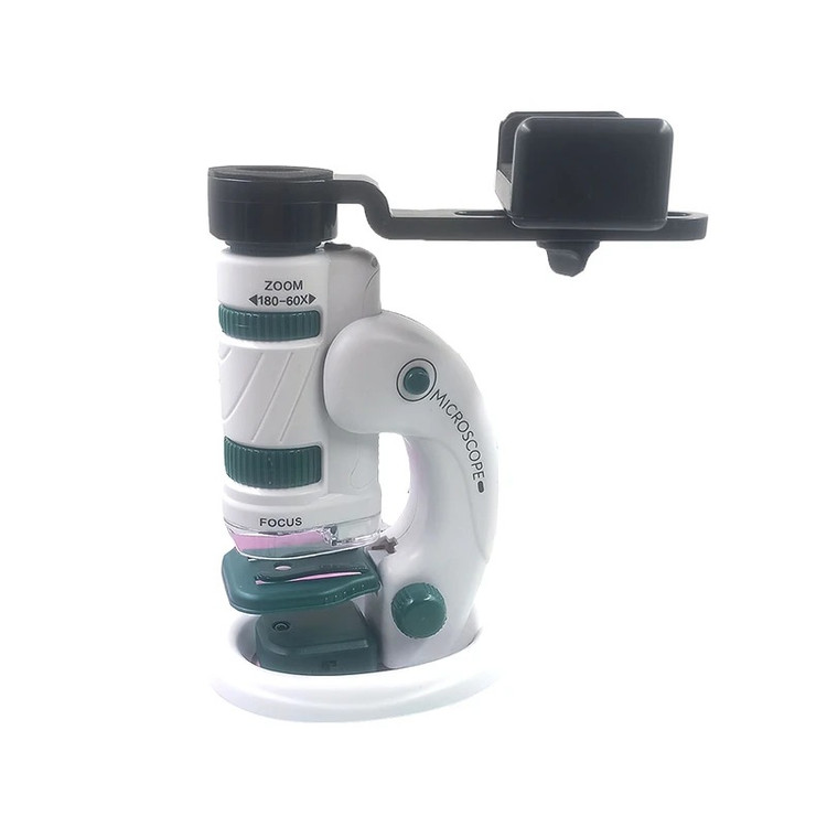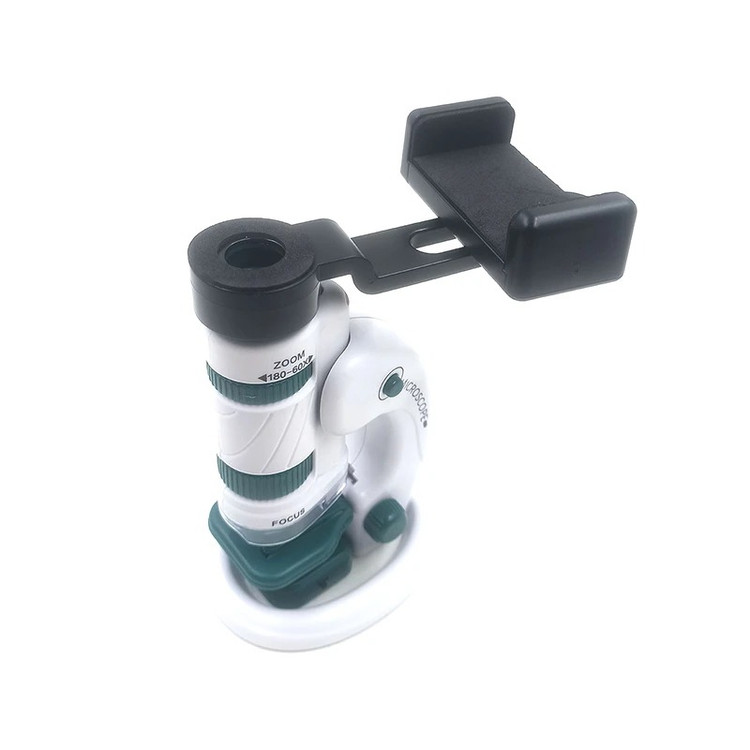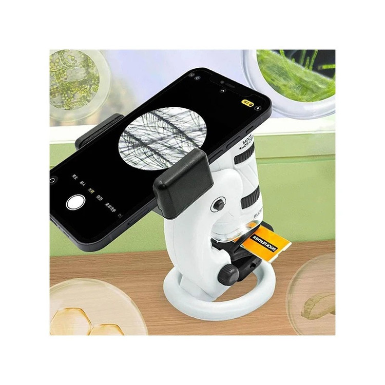 همچنین شما می توانید هولدر موبایل موجود در بسته بندی را روی قسمت بدنه میکروسکوپ نصب نمائید و از تصاویری که کودکتان می بیند عکاسی کنید.
