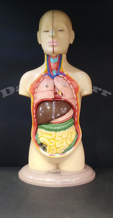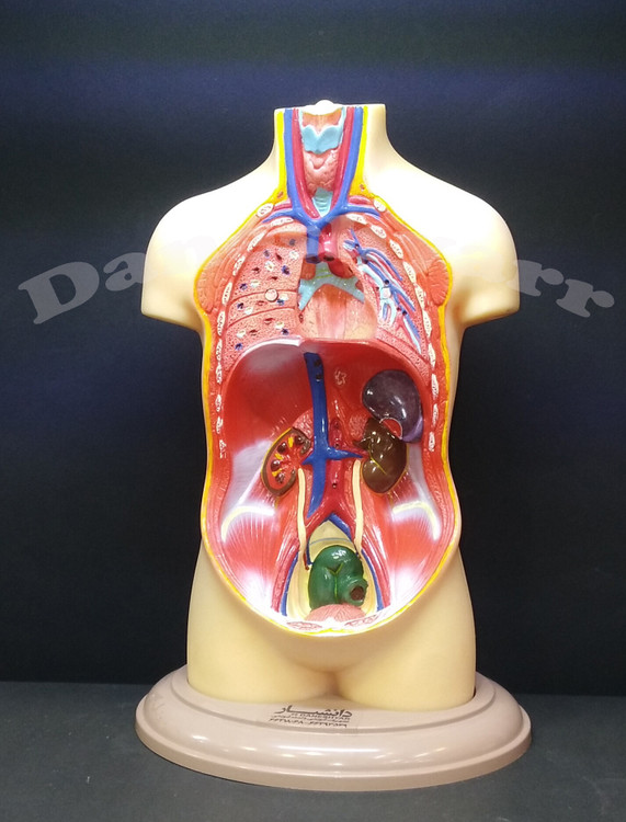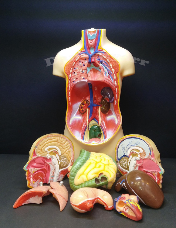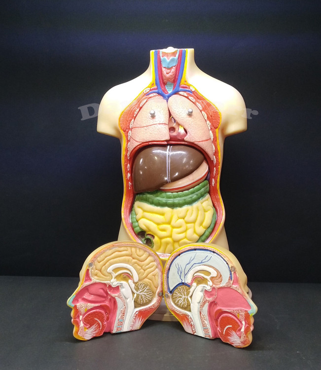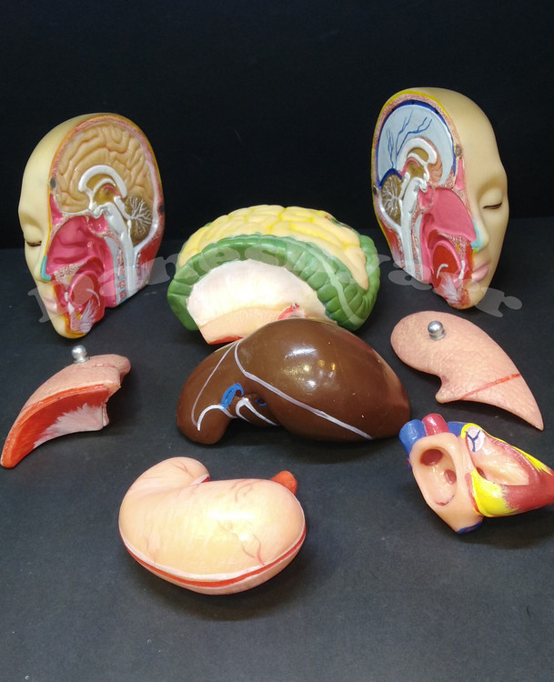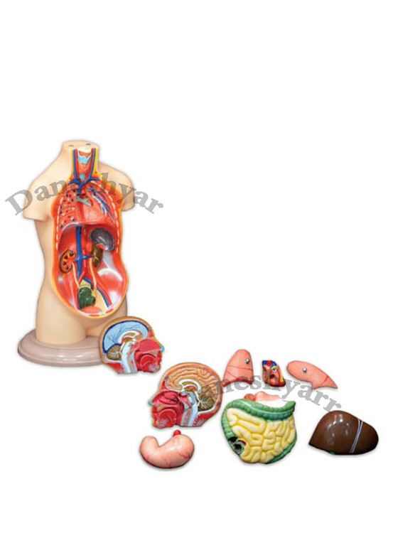 مولاژ نیم تنه انسان (با نمایش نیم سر) اجزا مدل بخش های قابل تفکیک این مولاژ شامل 8 عضو جداشدنی دو نیم سر، قلب، دو عدد شش، کبد، معده، روده کوچک و بزرگ است. این مولاژ بیشتر برای تشریح در بیمارستان ها و آموزش در مقاطع تحصیلی مرتبط به کار می رود. برخلاف مدل های موجود در بازار که بیشتر با پین بهم متصل میشوند، این مولاژ از نوع مگنتی می باشد. به همین دلیل سرهم و جدا کردن آن بسیار راحتتر صورت می گیرد. ویژگی های محصول مطابق با آناتومی بدن مگنتی قابلیت تفکیک اجزا قابل شستشو – ضد سرطان سایز 1\u002F4 اندازه طبیعی قد 35 سانت