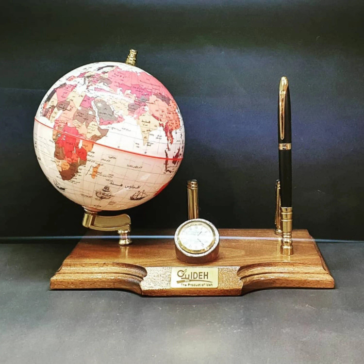 جنس این کره فوق العاده عالی دارای جای خودکار و جای کارت ویزیت پایه آن از چوب راش دارای ساعت قابل تنظیم با بسته بندی شکیل و جعبه شیک مناسب هدیه دادن