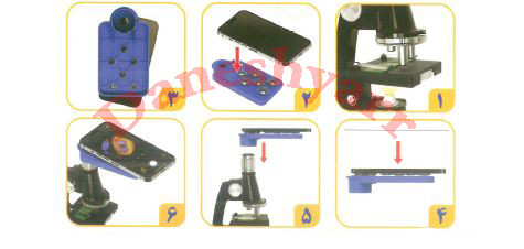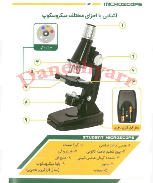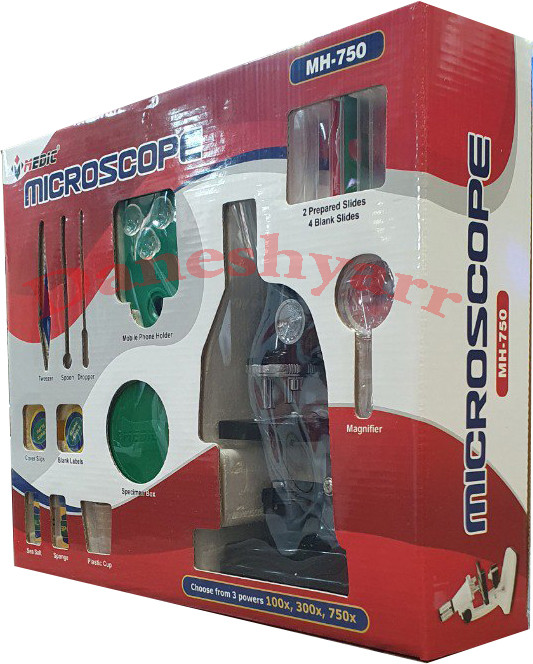 - محتویات داخل جعبه میکروسکوپ دانش آموزی 750X :