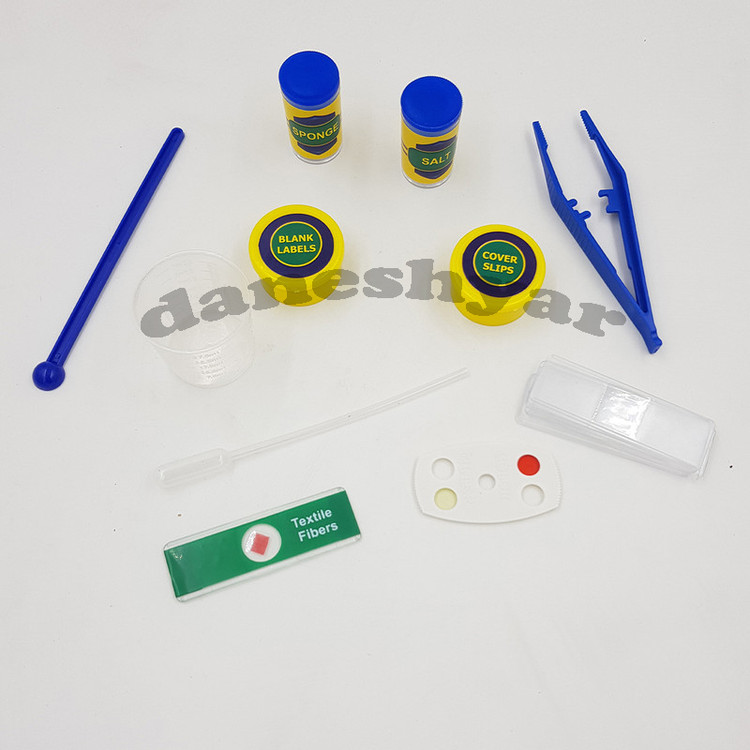 یک عدد میکروسکوپ بهمراه ظروف نگهداری نمونه و لام آماده