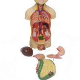 اگر به دنبال ماکتی از آناتومی بدن انسان هستید که دارای کیفیت خوب با قطعات جدا شونده و مناسب برای آموزش باشد ما مانکن نیم تنه مدل آناتومی آموزشی 8 قسمتی را به شما پیشنهاد می دهیم. در طرح نیم تنه آموزشی 8 قطعه , تشابه سایز واستاندارد ابعاد کلی و اندامهای آن به انسان مورد تحسین است . طول مانکن در حدود 35 سانتیمتر( یک چهارم اندازه طبیعی) بوده وشامل تنه و پایه و قطعات جدا شونده آن شامل قلب,دو عدد شش(ریه),معده,کبد(جگر) و روده ها می باشد ناگفته نماند رنگ آمیزی منحصر بفرد و نمایش جزئیات اندامها آنرا از نمونه های مشابه متمایز می سازد. مانکن نیم تنه 8 قسمتی رومیزی و قابل حمل بوده از جنس پی وی سی مخصوص نشکن و قابل شستشو با آب ساخته شده و رنگهای به کار رفته در آن مقاوم و بی ضرر می باشد. بهترین هدیه برای دانش آموزان کنجکاو و باهوش بوده نیز مناسب برای دانشگاهها,مراکز درمانی آموزشی ,مطب پزشکان,مدارس و آموزشگاهها و علاقه مندان به ساختار آناتومی بدن می باشد.