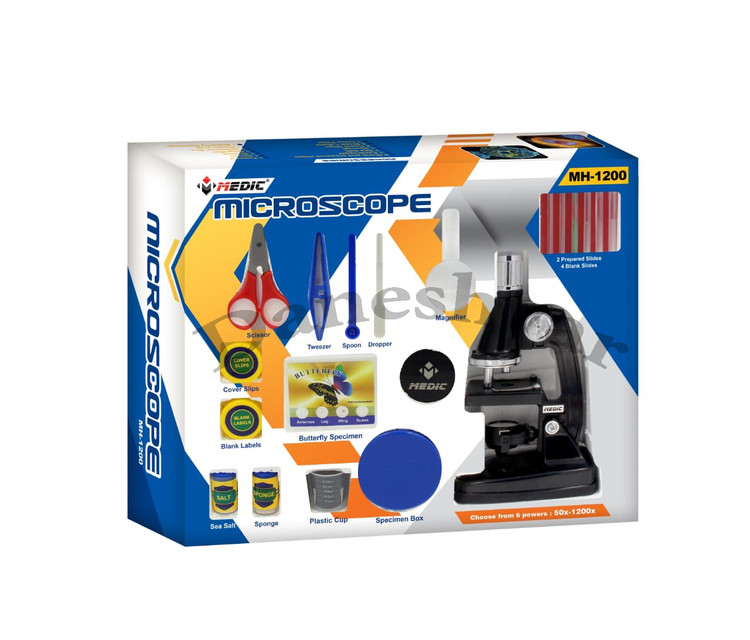 میکروسکوپ دانش آموزی 1200X مارک مدیک، ساخت ایران است و با کیفیتی که دارد گزینه مناسیبی است برای هدیه دادن. کار با میکروسکوپ یکی از مهارت های لازم در انجام آزمایشات است. میکروسکوپ یک وسیله پر کاربردی در انجام بسیاری از پروژه ها بوده و ما را در کشف ناشناخته ها کمک می کند. در واقع هزاران اسرار کوچک و بزرگ در دنیای میکروسکوپی وجود دارد. کودکان شما می توانند هر آنچه را که در اطرافشان هست را در زیر میکروسکوپ تماشا کنند و آنها را با یکدیگر مقایسه نمایند. میکروسکوپ MH-1200 برای پژوهش های ساده و ماجراجویی در دنیای ماده با قابلیت بزرگنمایی تا 1200X طراحی شده است.
