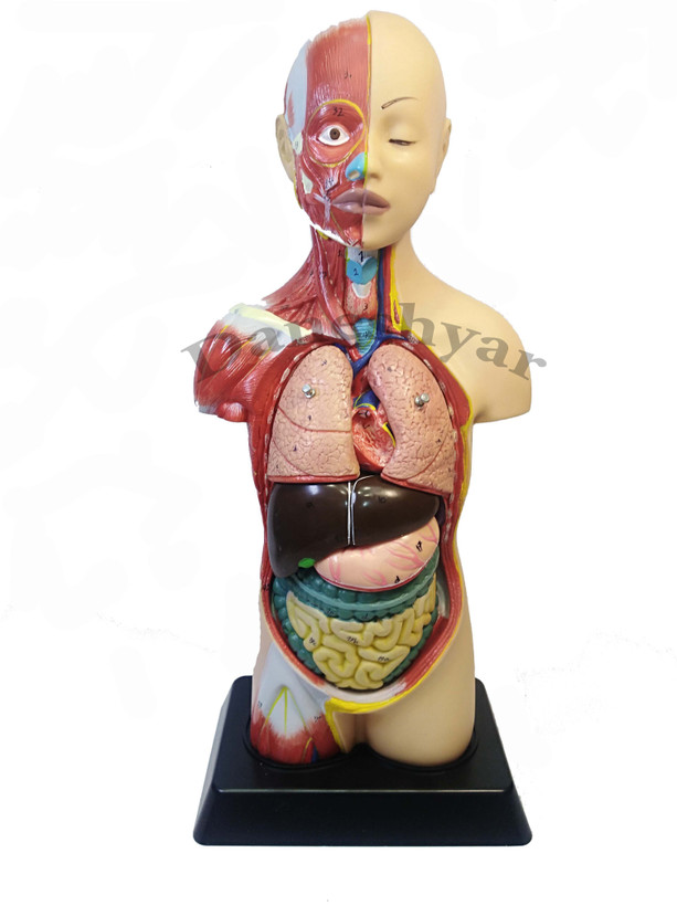 مدل اناتومی مولاژ نیم تنه همراه با نمایش ماهیچه ها این مولاژ شامل قلب، جگر، معده، ریه، کبد و روده است. برای گروه سنی 8 سال به بالا مناسب است. از مواد PVC و نشکن ساخته شده است. رنگ روی قطعات ثابت و شفاف است. سایز آن 1/2 اندازه طبیعی استفاده آسان و آموزنده قابل استفاده در مدارس و منازل مولاژ نیم تنه انسان ویا همان مانکن نشان دهنده اعضا و احشای انسان است در این مولاژ قابلیت تفکیک و جدا سازی اعضا و احشای انسانی میباشد آناتومی بدن انسان دارای کیفیت عالی و رنگ آمیزی ثابت جهت آموزش قطعات داخلی بدن انسان به دانش آموزان می باشد.