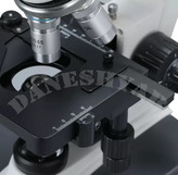 این میکروسکوپ دو چشمی بیولوژی ۱۶۰۰ برابر دارای منبع نور عبوری هالوژن سفید رنگ از پائین با قابلیت تنظیم میزان روشنایی و دارای سیستم فوکوس نور (کندانسور) بهمراه دیافراگم میباشد که برای تابش نور بروی نمونه نهایت انعطاف پذیری را داشته نور را دقیقا در جای دلخواه بروی نمونه متمرکز مینماید و اگر هنگام استفاده از عدسی شیئی ۱۰۰ برابر بخواهیم به حداکثر وضوح این میکروسکوپ برسیم ، بایستی میکروسکوپ دارای کندانسور باشد. همچنین درون پک میکروسکوپ یک عدد فیلتر آبی رنگ نیز موجود میباشد.