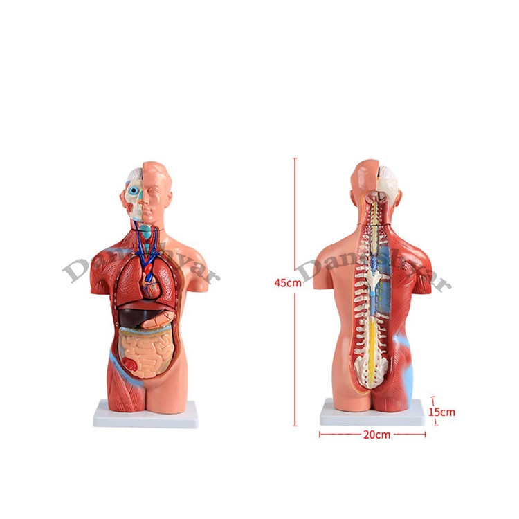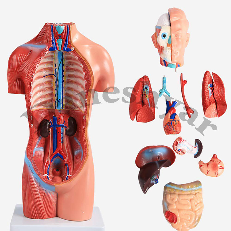 این مدل تنه فاقد اندام های جنسی است و موارد ذیل را به نمایش می گذارد: